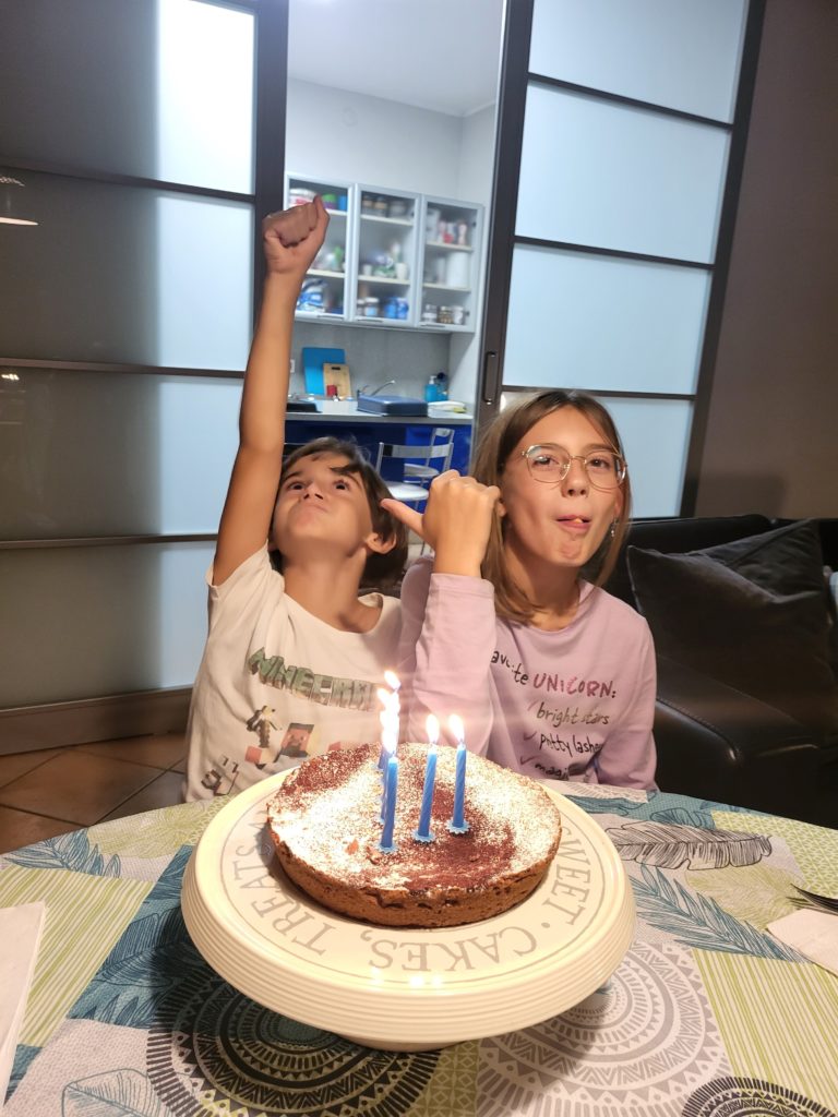 Faremo una piccola festa qui nella nostra nuova casa di Carnate questo sabato, per il tuo compleanno e quello di Tata; hai invitato tre nuovi tuoi compagni di classe: Martino, Ricardo e Tommaso! Ma.. in fondo il tuo compleanno era oggi, e allora dopo cena ti abbiamo portato a sorpresa una piccola torta per festeggiare insieme!