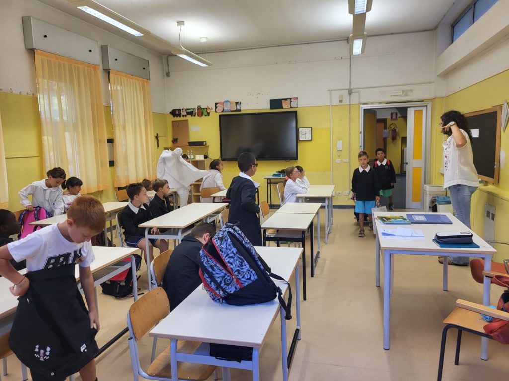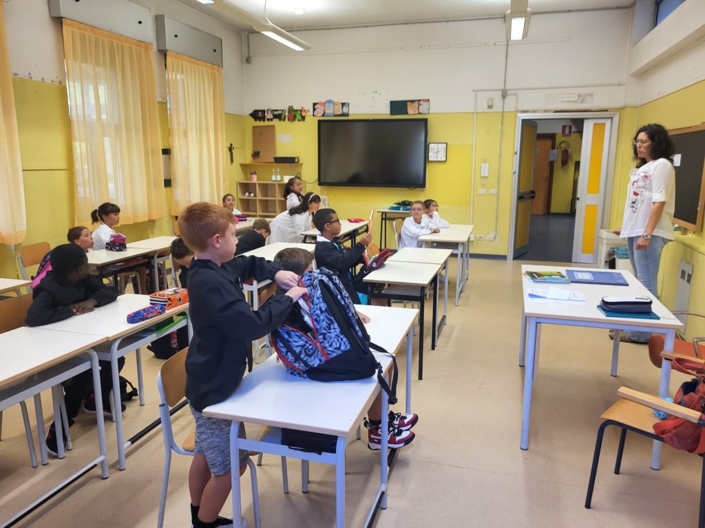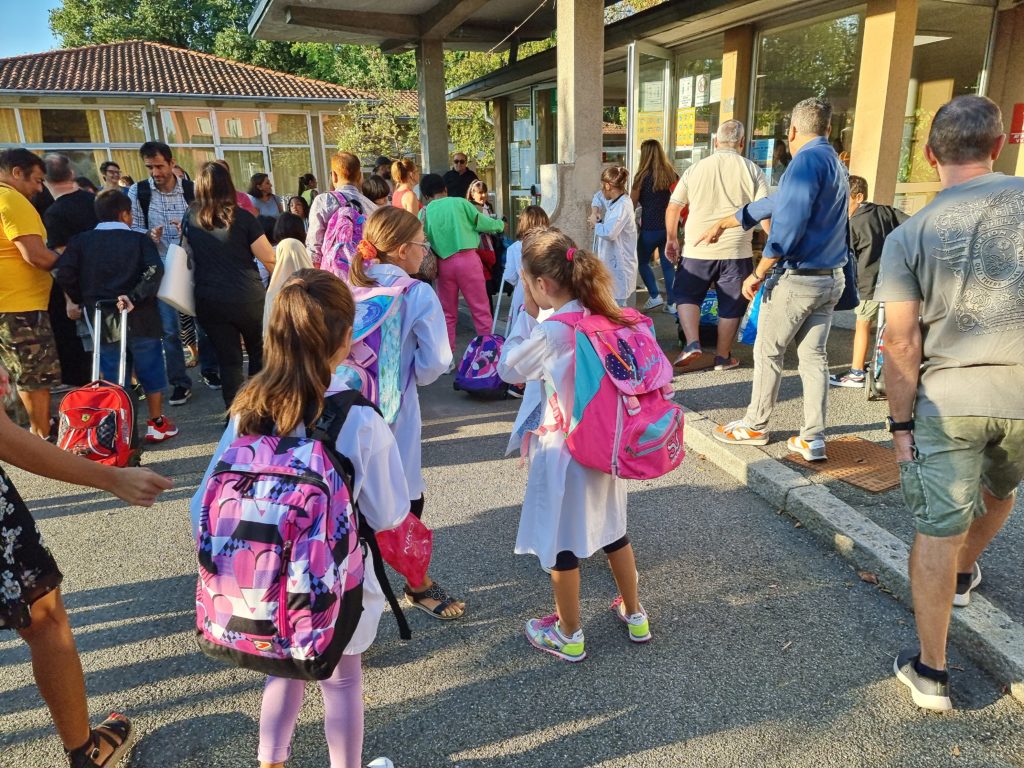 Ti abbiamo portato a scuola tutti e tre, poco fa, e fra poco torneremo a portare Marco per la sua prima giornata.