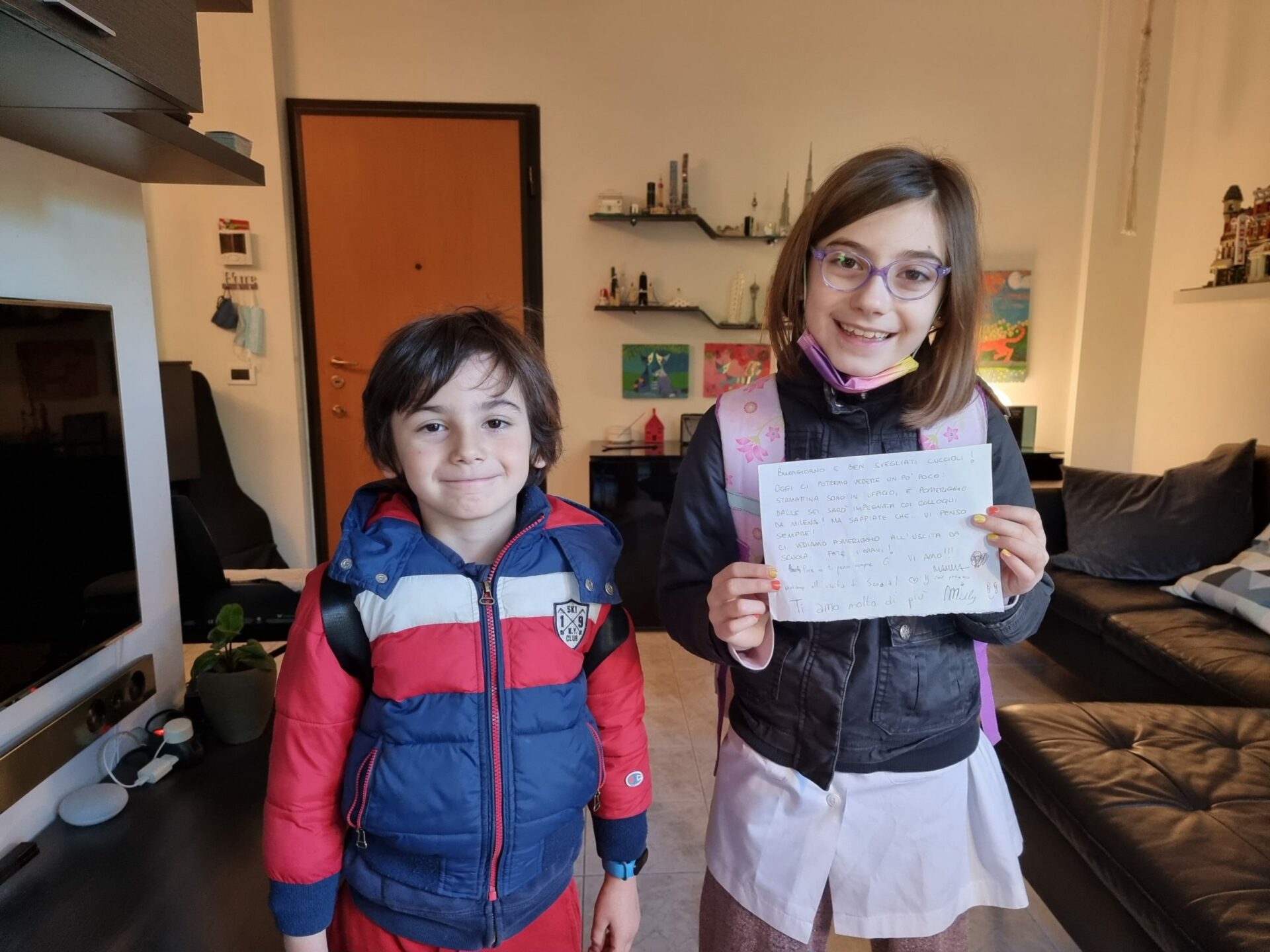 Oggi la mamma si è svegliata prestissimo per andare in ufficio, ma prima di uscire ha pensato a voi lasciandovi questo bel bigliettino al quale Milena ha risposto 😀