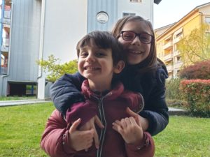 Per fortuna però il pomeriggio scendiamo sempre in giardino, giocate tanto, mille giri in bici e monopattino. Purtroppo non ci fanno nemmeno uscire di casa, ci sono chiusi i negozi, i parchetti, le scuole, tutto! Non si può andare a trovare i nonni… ma ogni tanto li salutiamo tutti con le videochiamate!