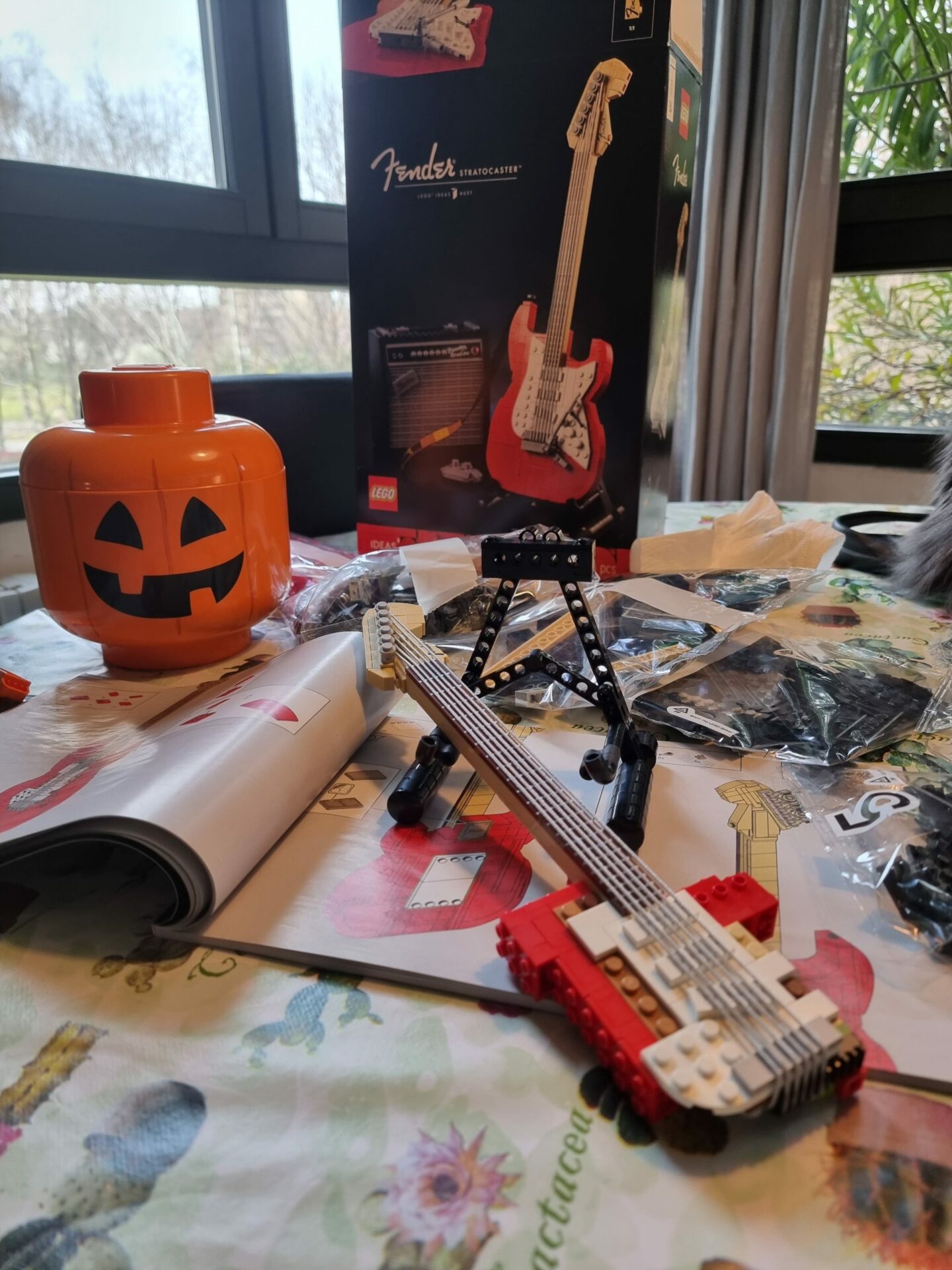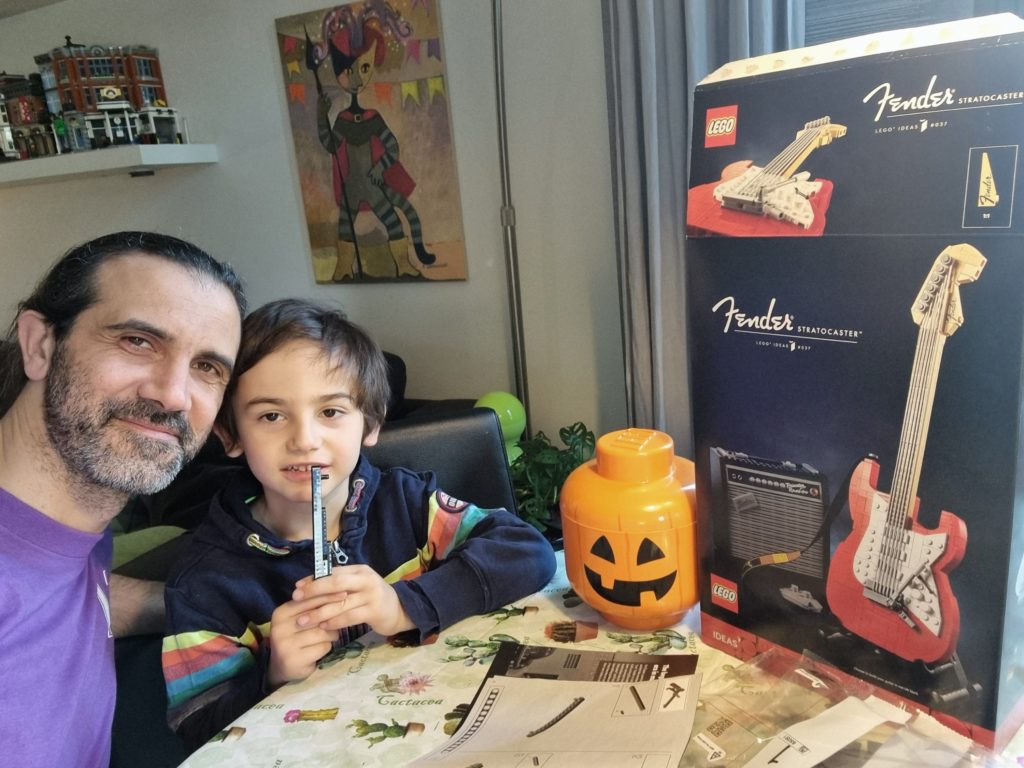 Questa mattina Marcolino, che è ancora a casa dalla scuola materna per un mal di gola che non vuole passare, mi ha chiesto di costruire insieme a lui la chitarra Fender della Lego (Lego 21329) che mi hanno recentemente regalato lui, Milena e mamma Laura in occasione della festa del papà (21 marzo 2022).