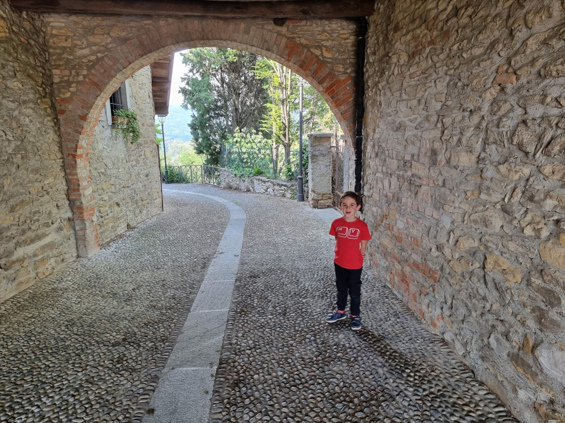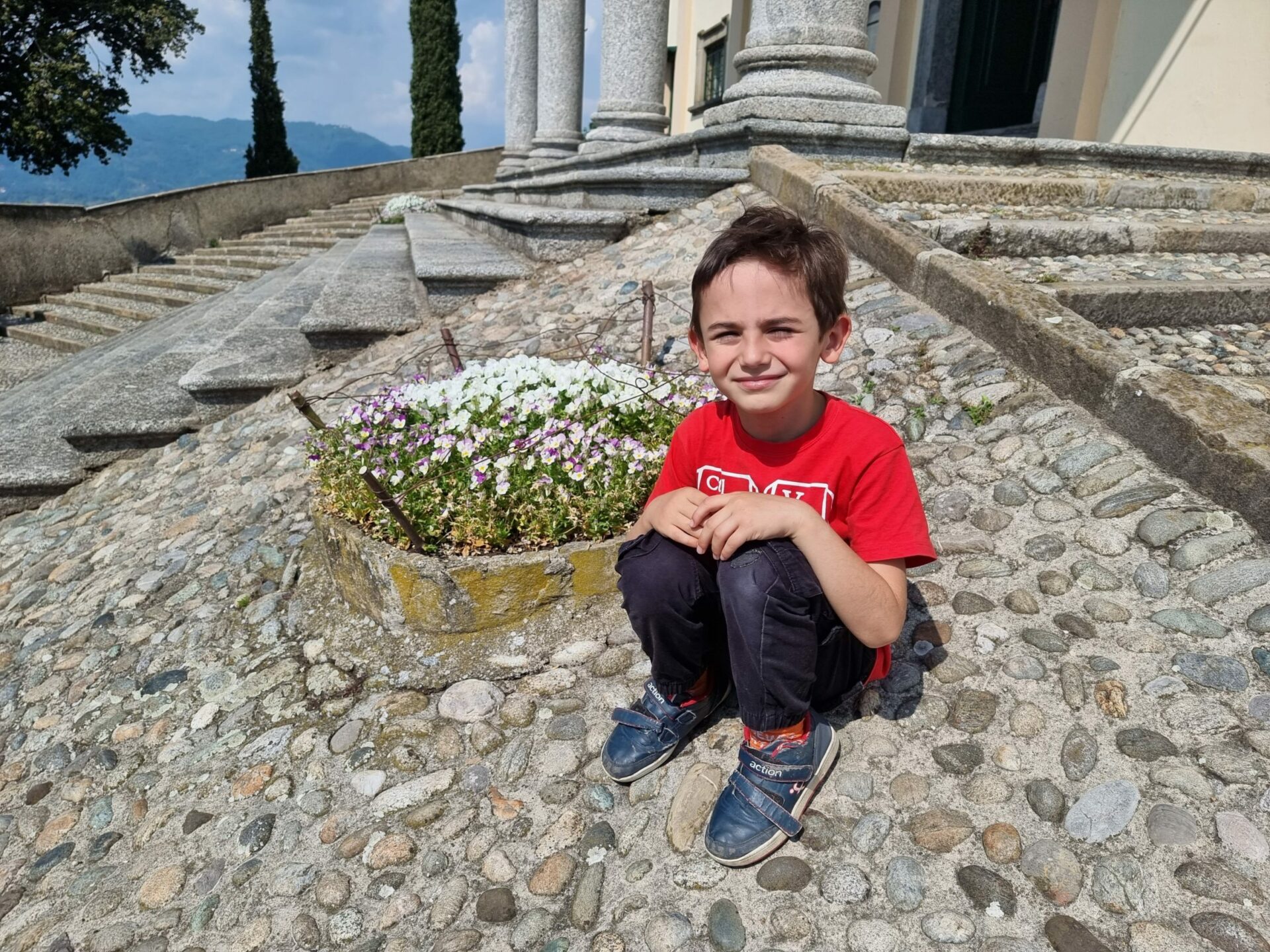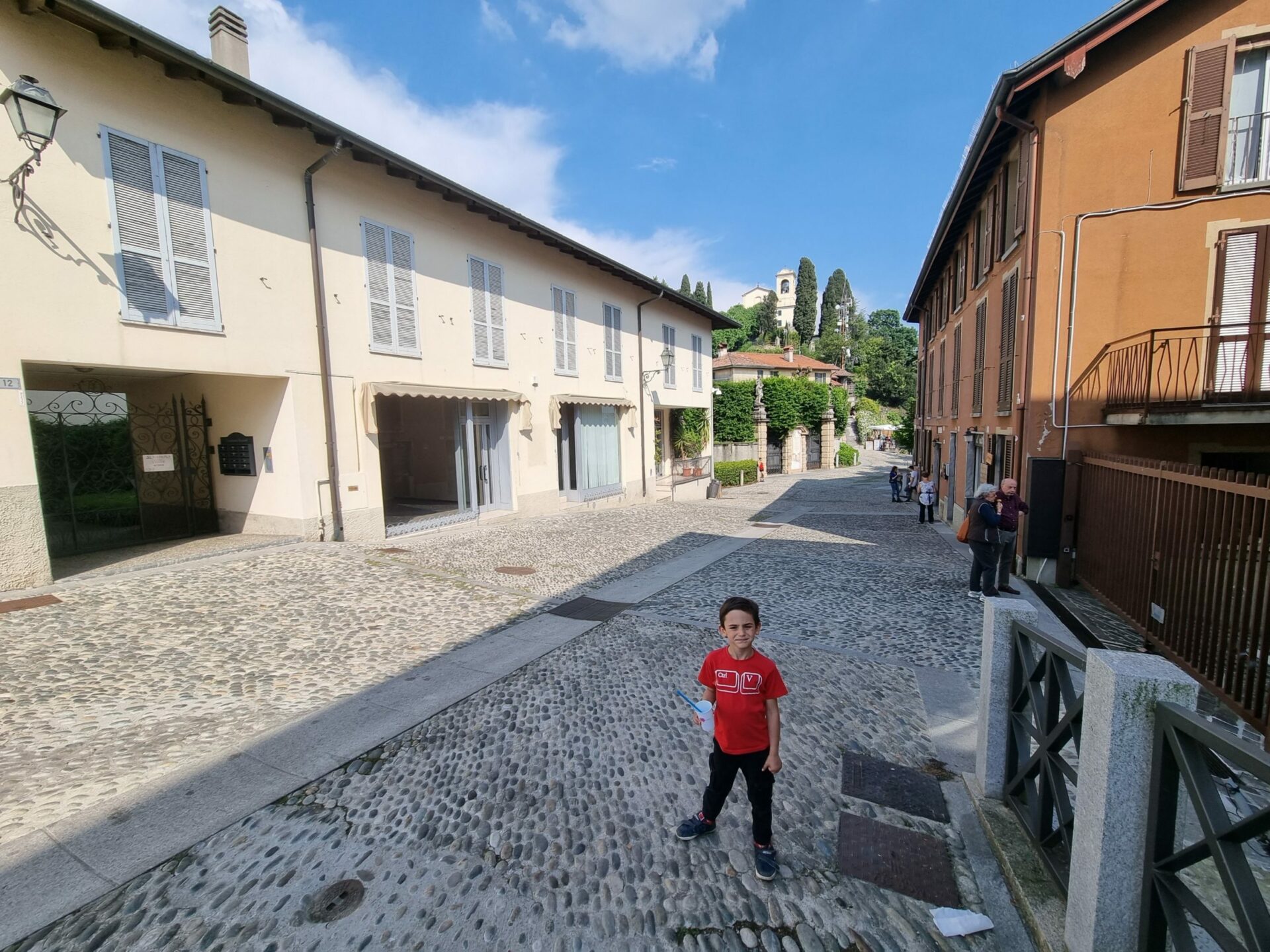 Marcolino ha contato 180 gradini per arrivare fino in cima alla scalinata e raggiungere la chiesa dove ci siamo fermati per ammirare affreschi, statue e dire una preghierina per i nostri cari.
