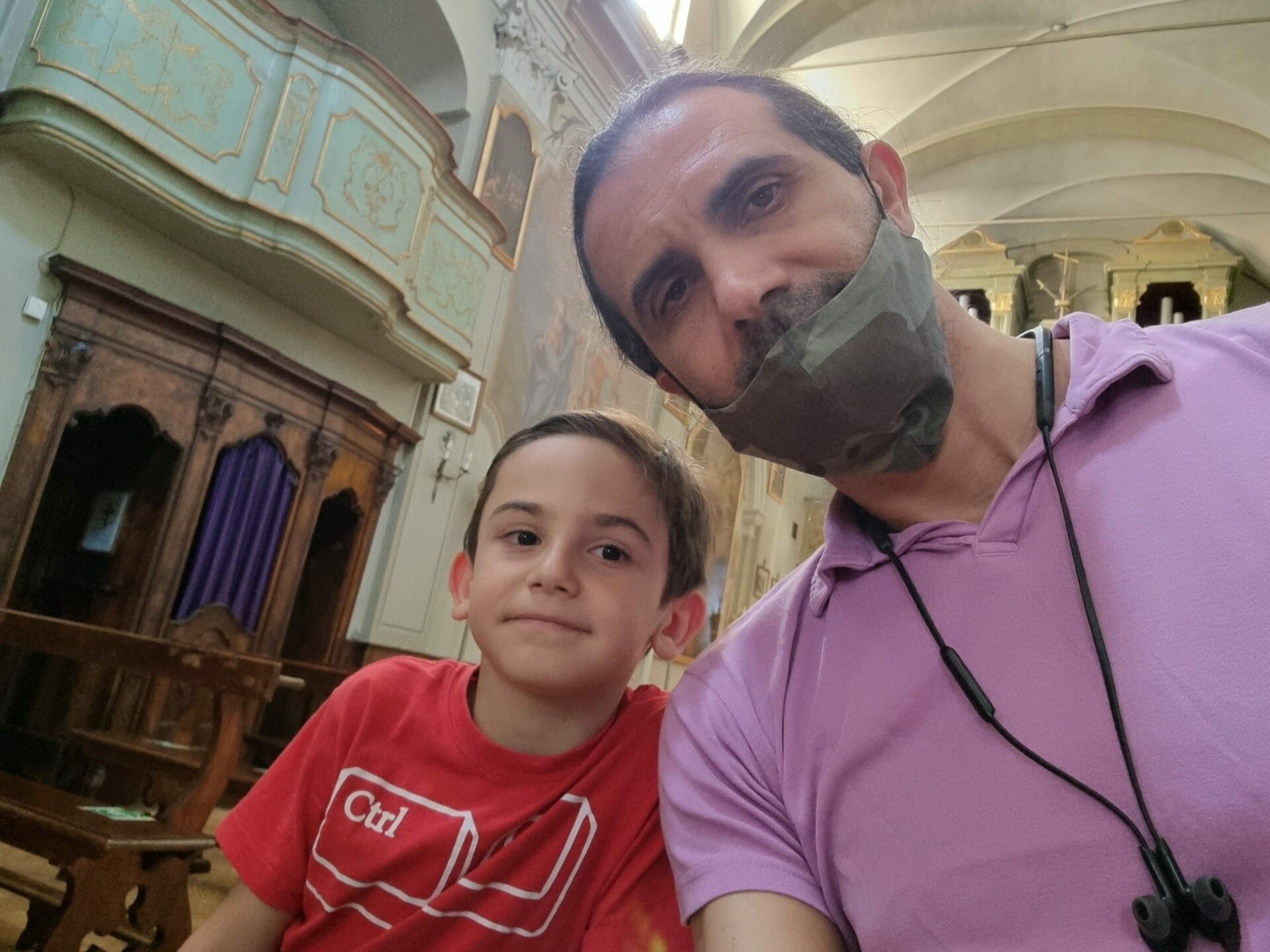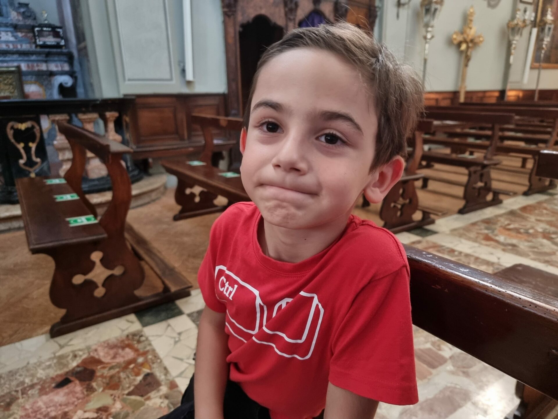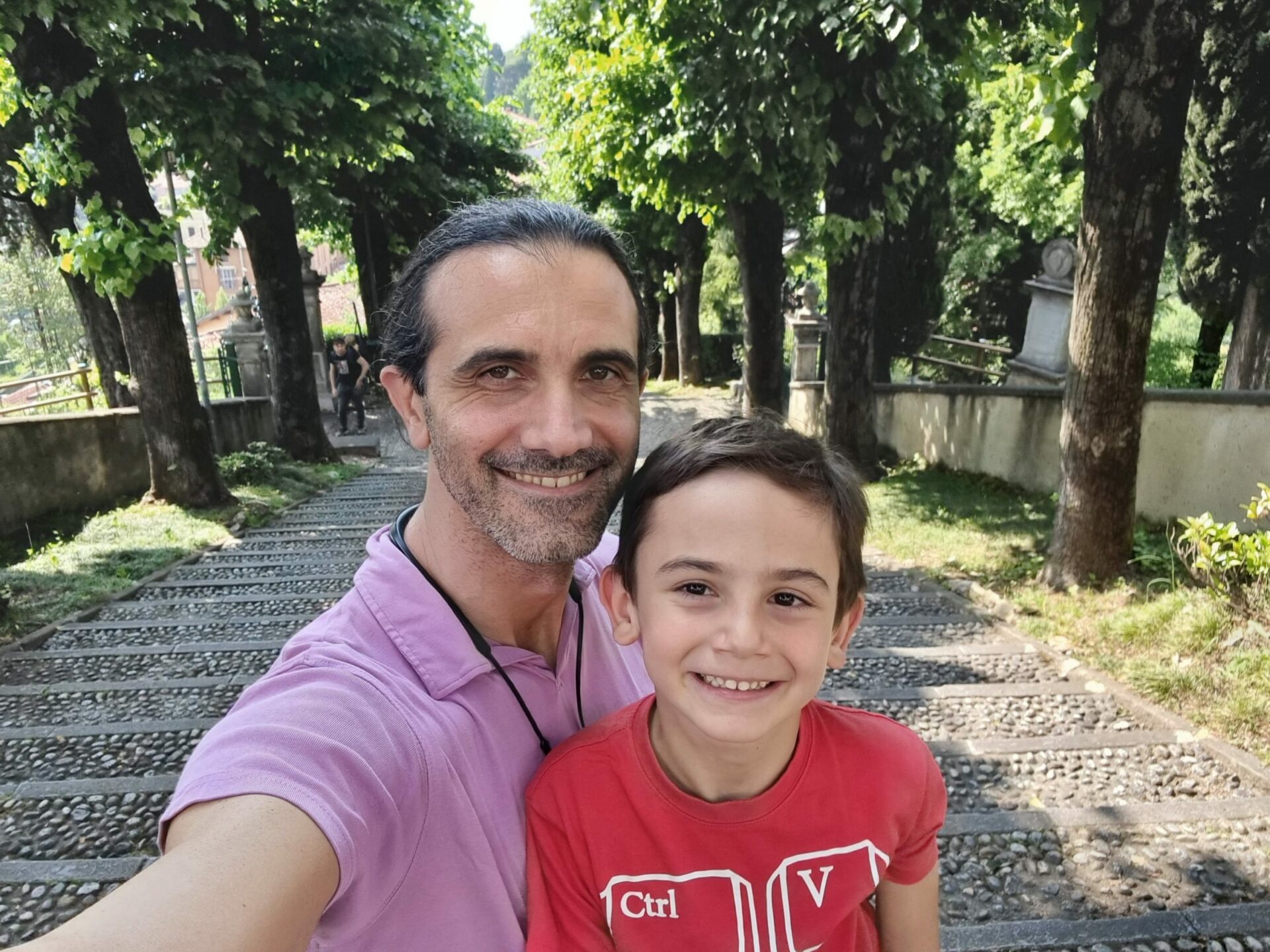 Marcolino ha contato 180 gradini per arrivare fino in cima alla scalinata e raggiungere la chiesa dove ci siamo fermati per ammirare affreschi, statue e dire una preghierina per i nostri cari.