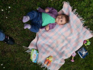 Ti scrivo mentre siamo proprio qui insieme, ai parchetti di via Modigliani. Hai appena mangiato la perina frullata, e ora ho provato a metterti giù nell’erba. Quanto sei bella 🙂