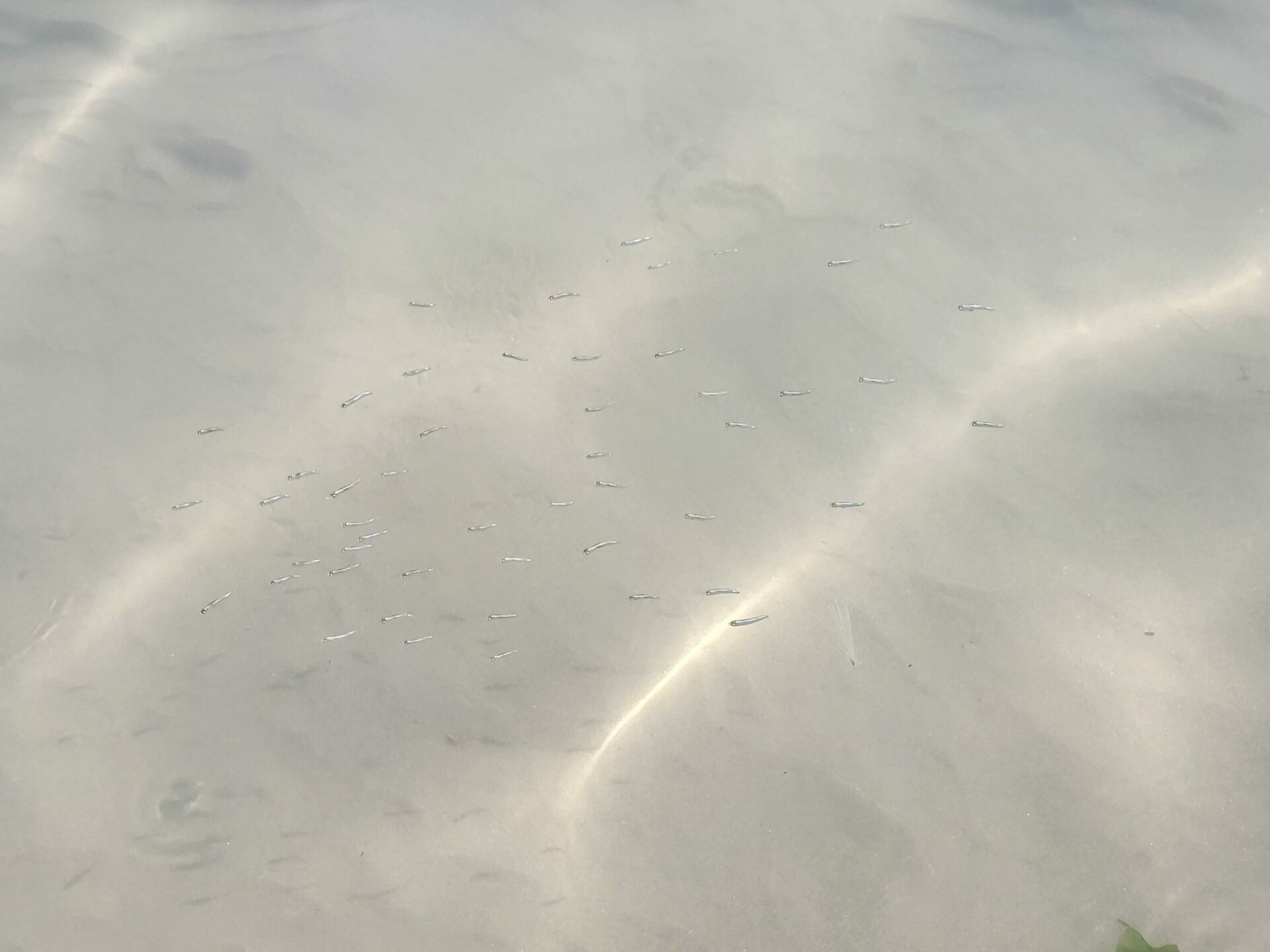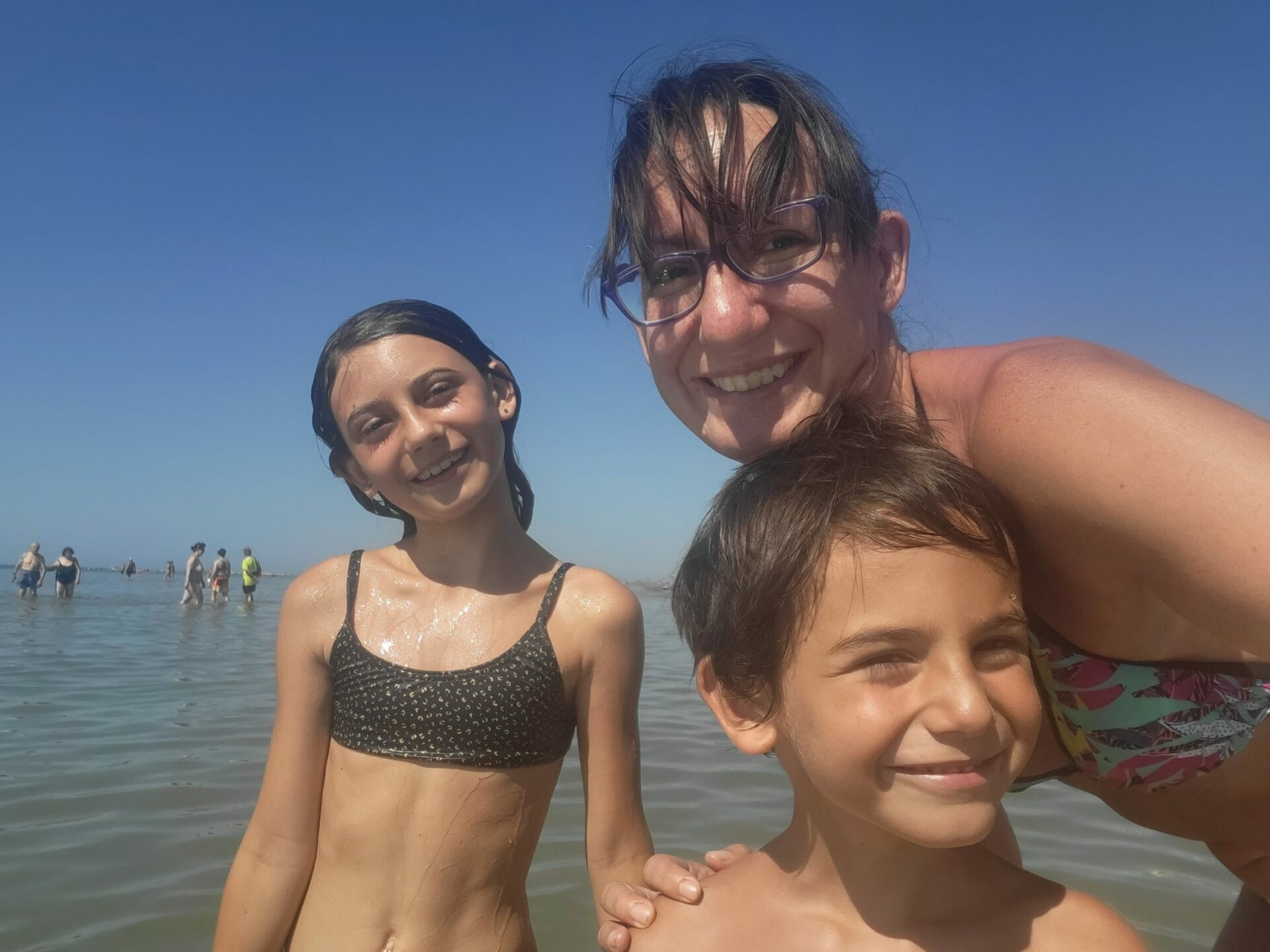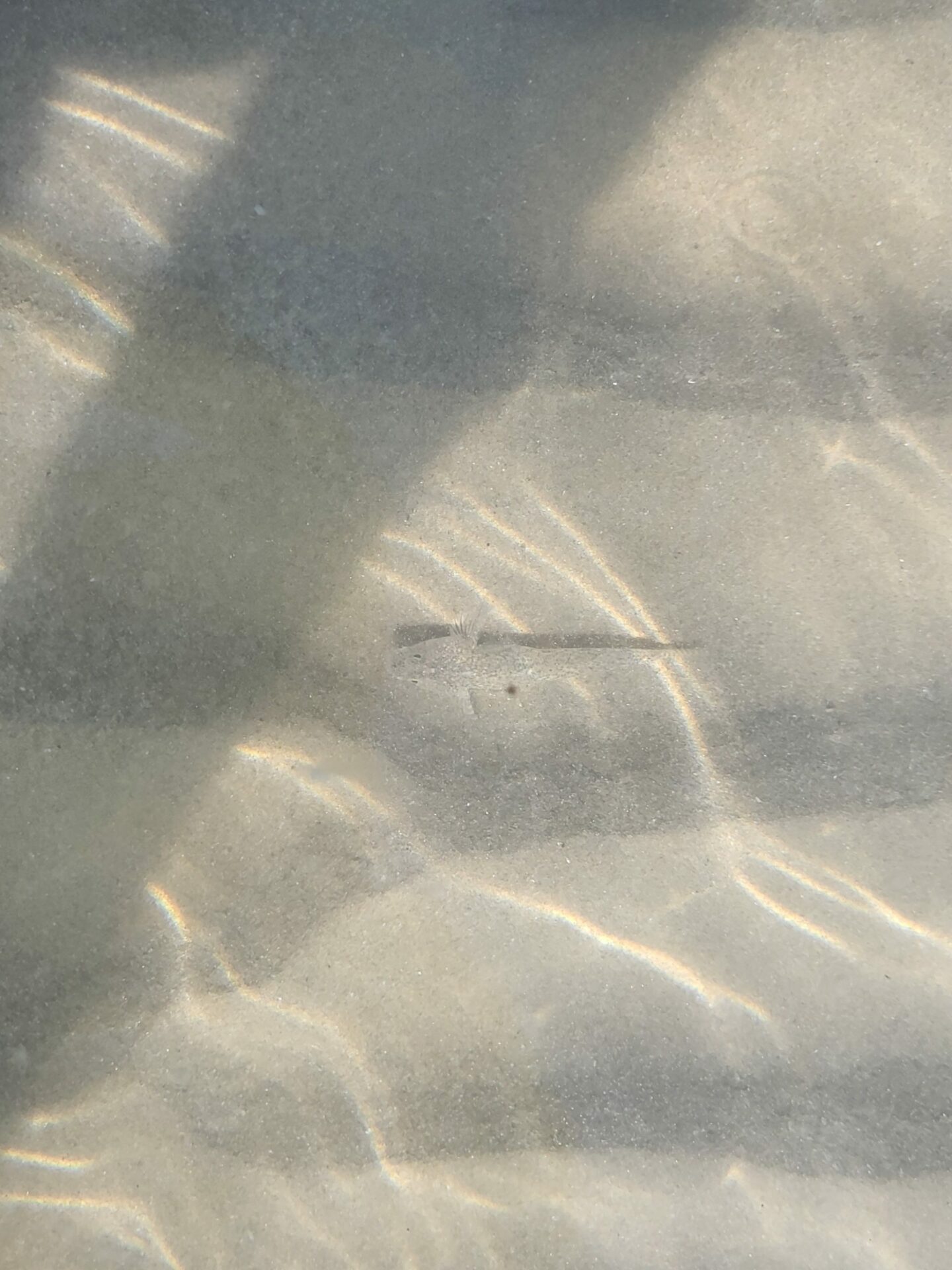 Buongiorno! Sono le 10 del terzo giorno qui. Dopo una colazione, che abbiamo ridotto ai minimi termini, siamo venuti qui in riva al mare. Il mare è calmissimo questa mattina, l’acqua pulitissima. Abbiamo fatto una camminata e incontrato qualche pesciolino! Eccoci!