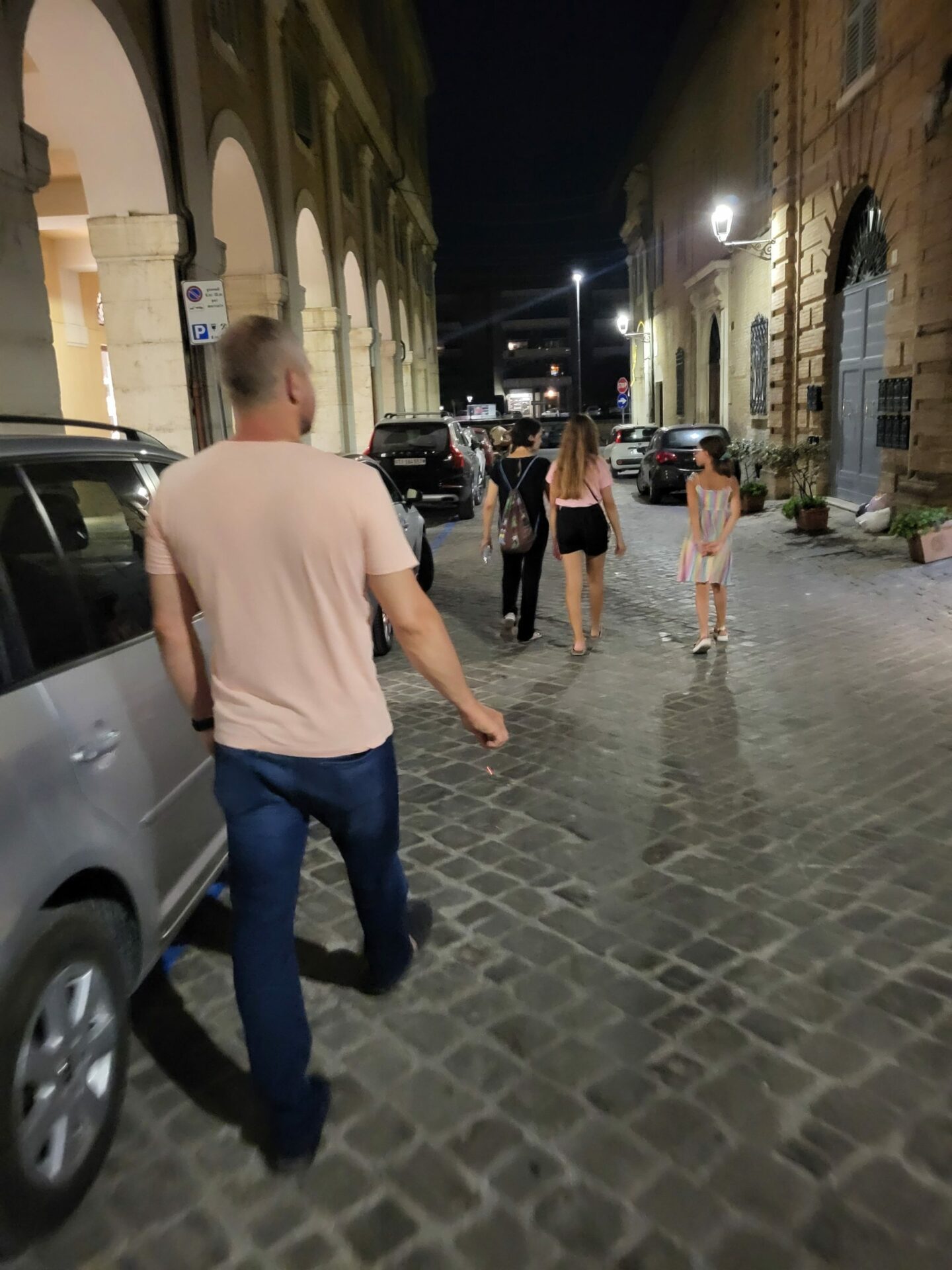 Pomeriggio siamo stati al mare, abbiamo fatto un lungo bagno insieme. Verso le cinque poi, è passata a trovarci Morena in spiaggia, la signora che ci affitta la casa quando veniamo qui e siamo state lì a chiacchierare un bel po! Inoltre ci ha invitati a mangiare un gelato insieme a Senigallia di sera! Così dopo cena siamo corsi lì, e siamo andati. Marco molto stanco e sempre molto timido, non hai proferito parola. Milly… ci hai messo un po’ eh, ma poi hai iniziato a chiacchierare con Vanessa!