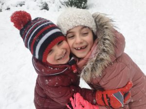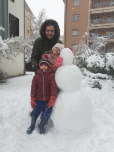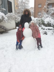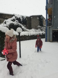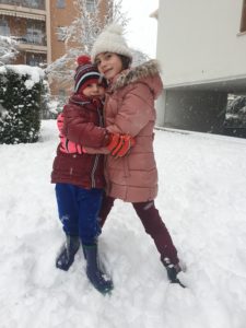 Ciao amori! La scorsa notte ha nevicato e… stamattina eccoci giù in giardino subito a giocare!