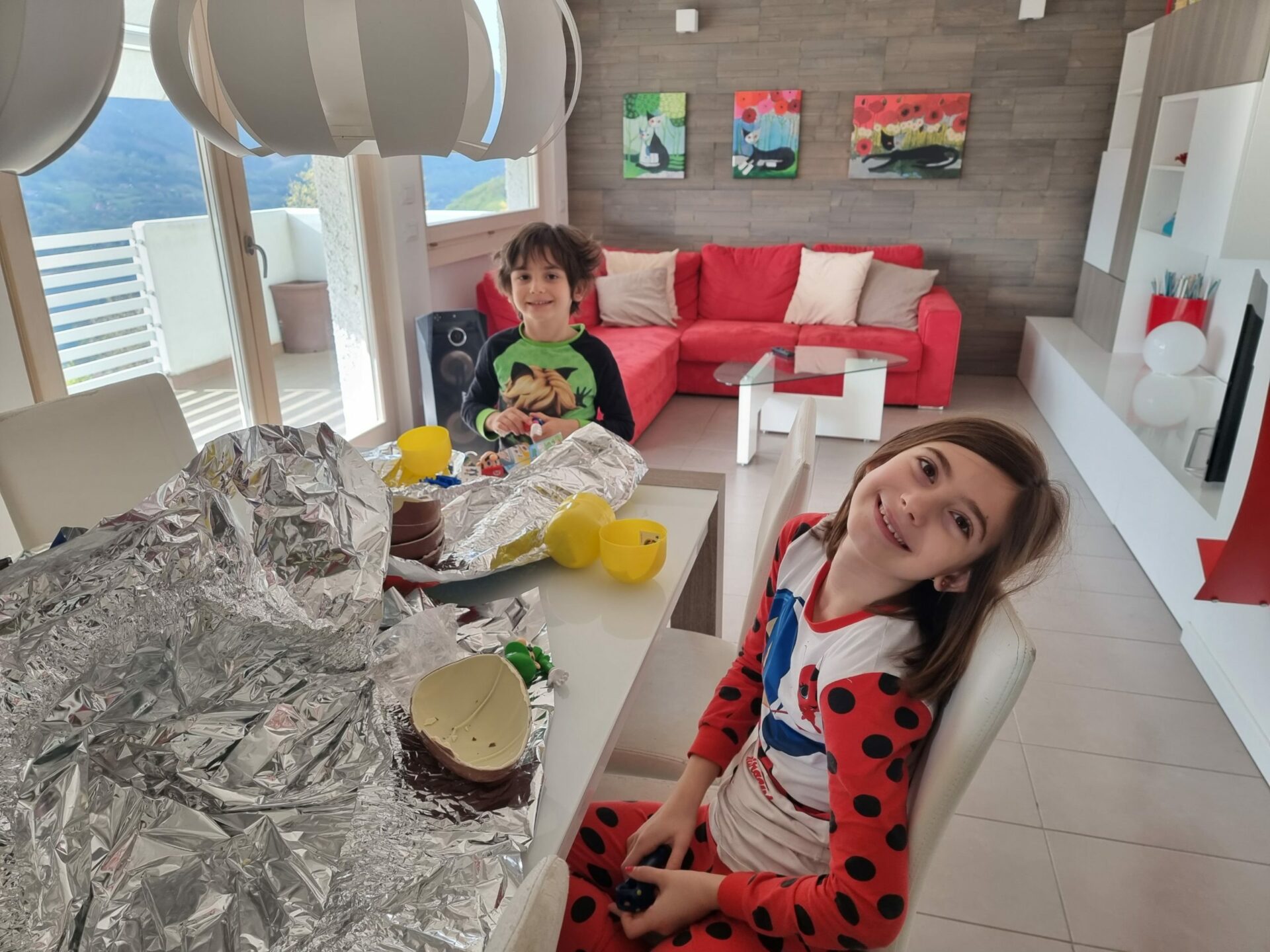 Il coniglio pasquale si è dato da fare, ma anche mamma e papà che vi hanno fatto una gradita caccia al tesoro con 6 belle sorprese che avete gradito molto 😀