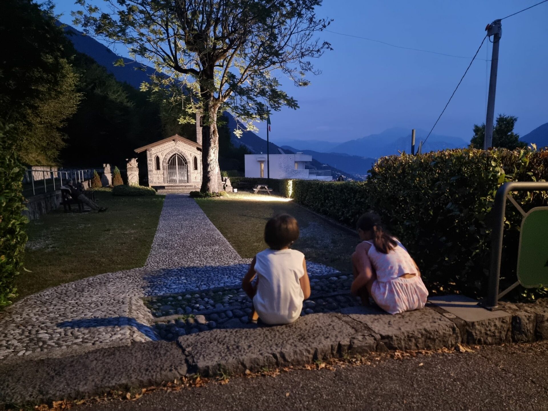 Stasera, attanagliano dal caldo e dopo un pomeriggio di pulizie, il Babbo vi ha proposto di fare quattro passi verso San Bernardino. Mami troppo cotta per essere della partita, mentre voi avete accettato di buon grado.
