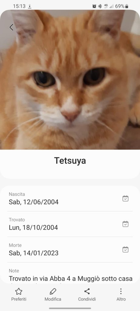 Credo e spero tu abbia vissuto una vita felice, senz’altro hai a lungo rallegrato la nostra col tuo fulvo musetto e ti abbiamo tutti voluto bene.