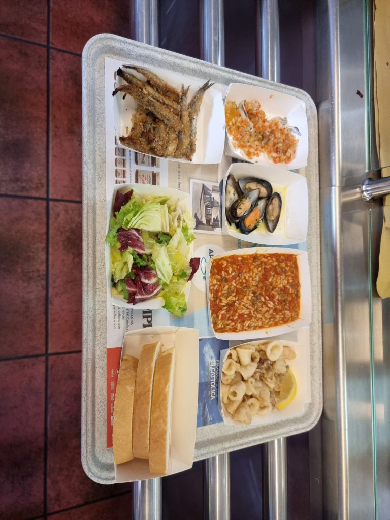 Per il pranzo ci fermiamo un’ultima volta al Pesce Azzurro, la nostra prima volta a quello di Senigallia e così possiamo dire di averli provato tutti negli anni, oltre a quello storico di Fano e dei più recenti Rimini e Cattolica.