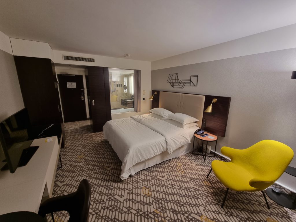 Eccomi arrivato nella stanza dell’albergo il Four Points by Sheraton, comodamente di fronte al palazzo UniCredit, così provo le brezza di andare al lavoro a piedi in 2 minuti 😆