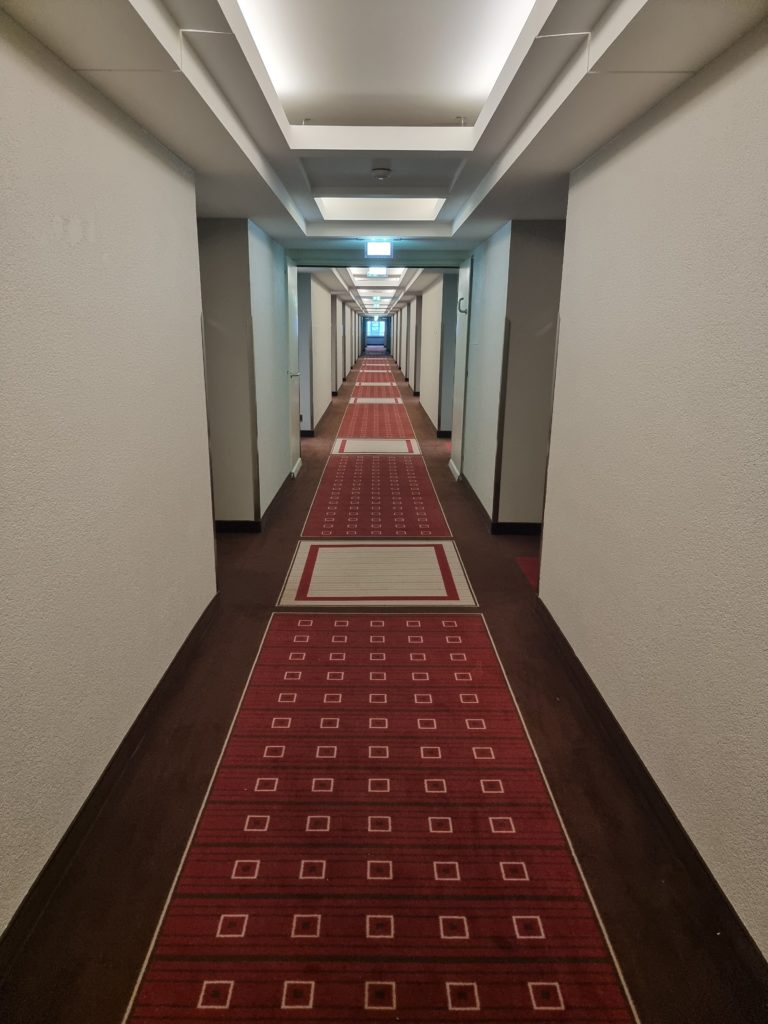 Sveglia mattutina e via verso l’ufficio attraversando il corridoio dell’hotel che ricorda mooooolto quello del film Shining 😅