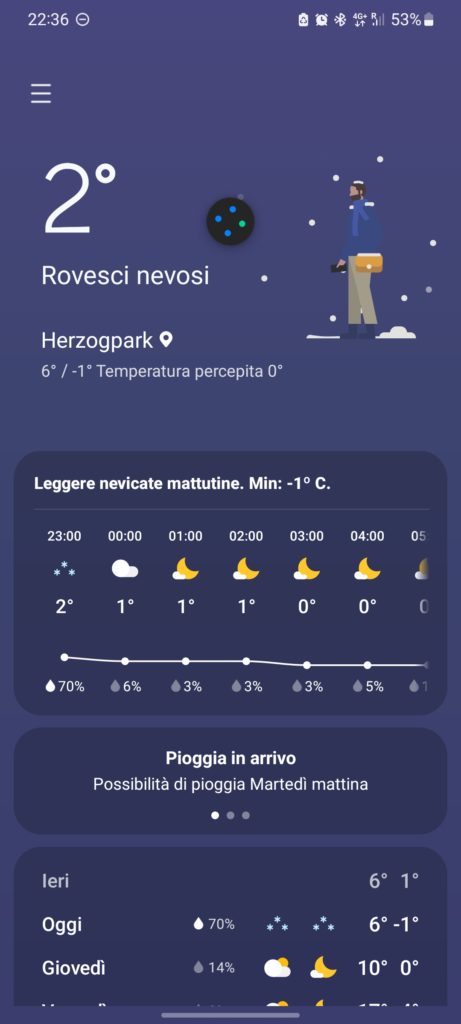 Il giorno successivo, 15 Marzo, la temperatura precipita a zero gradi e ci svegliamo con la neve sui prati 🥶