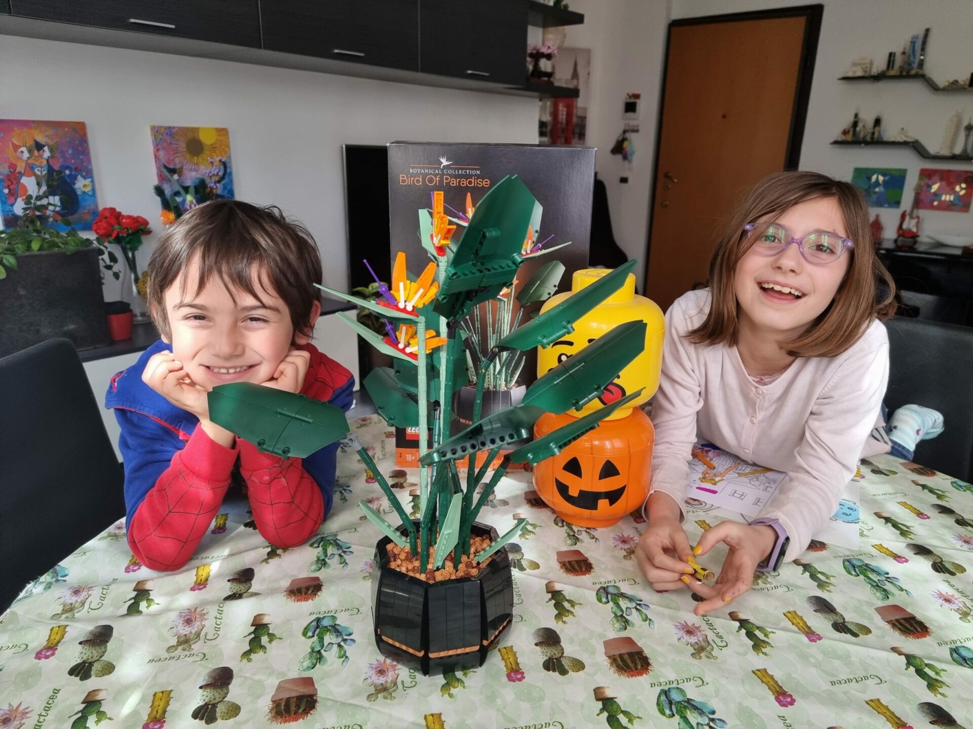I due nani lottano per fare l’amplificatore Fender (promesso a Milena), quindi salomonicamente facciamo la Strelitzia, o uccello del paradiso (Lego 10289).