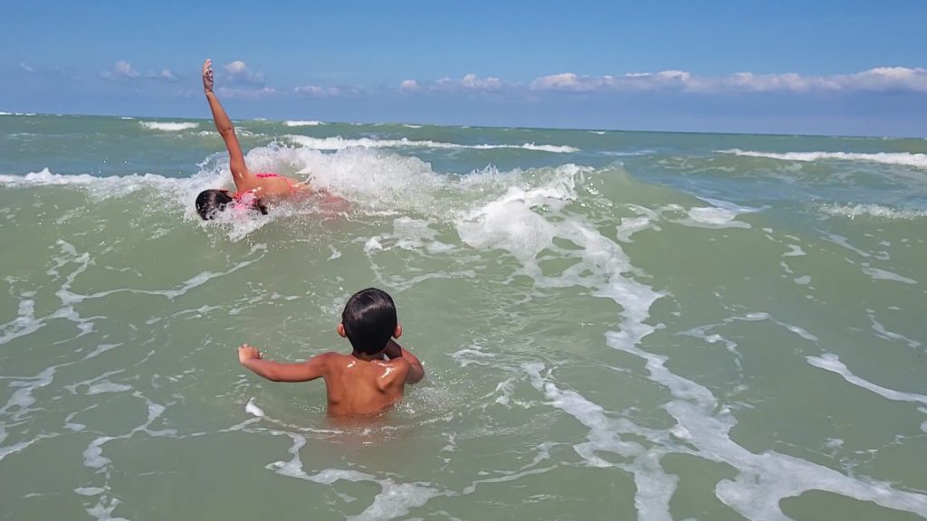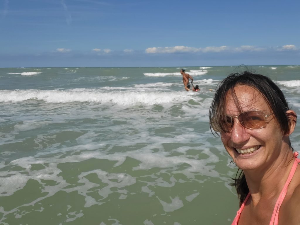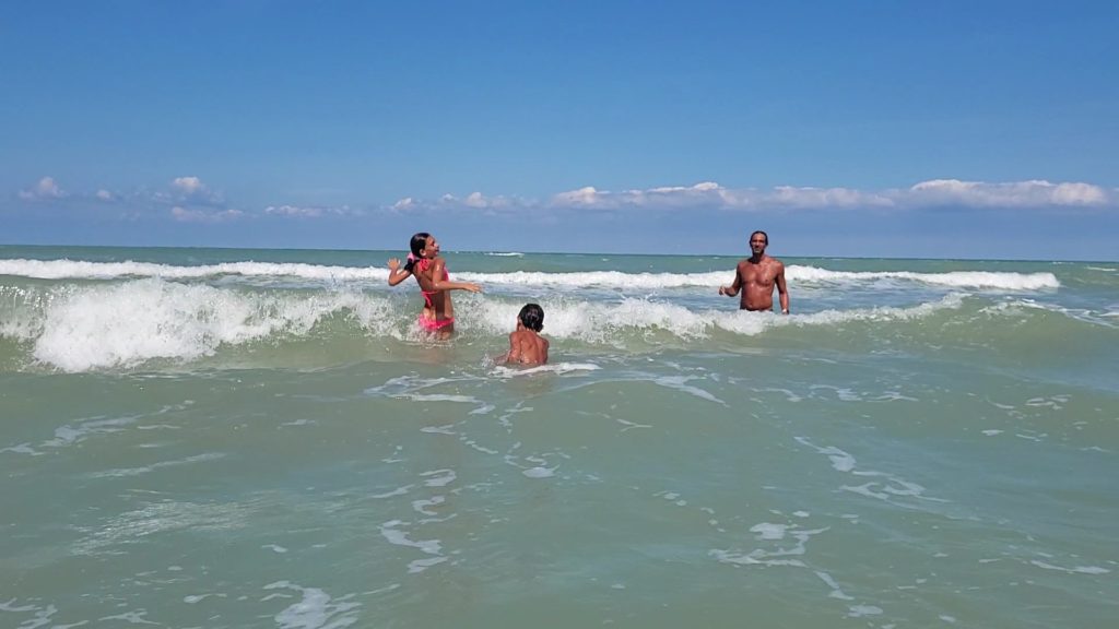 Ciao! Eccoci qui a Marotta, nell’ultimo giorno di lavoro di mamma, ora sono ufficialmente in ferie anche io! Purtroppo ieri il tempo è stato brutto, ma ne avete approfittato per fare una bella gita alle grotte di Frasassi, mentre mamma è rimasta a lavorare… quindi oggi è ventoso e il mare è mosso… e mi sa che non aspettavate altro che divertirvi nelle sue onde!